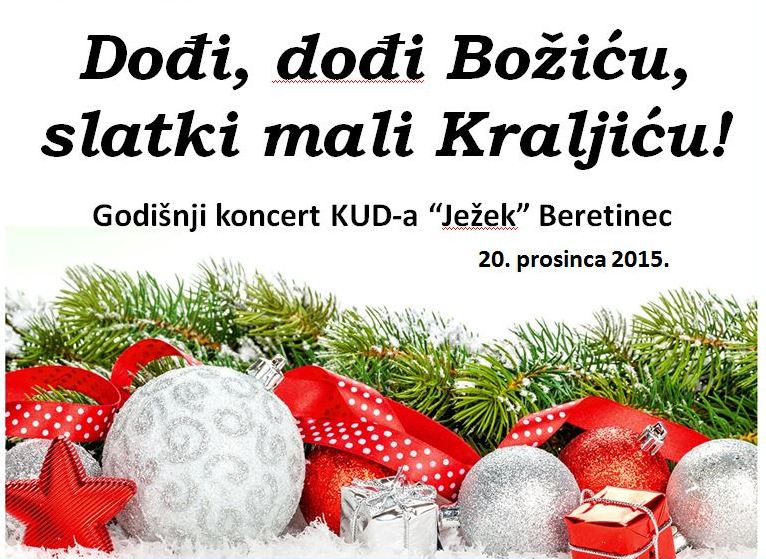 Na pozornici su se izmjenjivali dječja i odrasla folklorna skupina, tamburaški sastav te gosti, Zbor mladih „Put života“ Župe Sveti Ilija i Folklorno društvo „Rožmarin“ iz Dolene u Sloveniji. Ježeki su novoj i staroj publici pokazali program koji je obilježio njihovu 2015. godinu, ali i nove stvari na kojima su radili čitave godine. Tako je na godišnjem koncertu po prvi put izvedena prva koreografija izvornog folklora – „Vincekovo v Beretincu“. Koreografija je rezultat cjelogodišnjeg istraživanja i rada koreografa i voditelja folklora Krešimira Plantaka i ljudi iz beretinečkog kraja, koji su bili kazivači ili su iz ormara izvadili stare stvari i odjevne predmete svojih djedova i baka. U izvedbi sudjeluju baš svi aktivni članovi KUD-a – od najmlađih, do najstarijih. Važno je reći, a to je naglasio i autor koreografije, da smo jedino društvo u Republici Hrvatskoj koje koreografski obrađuje temu Vincekova.