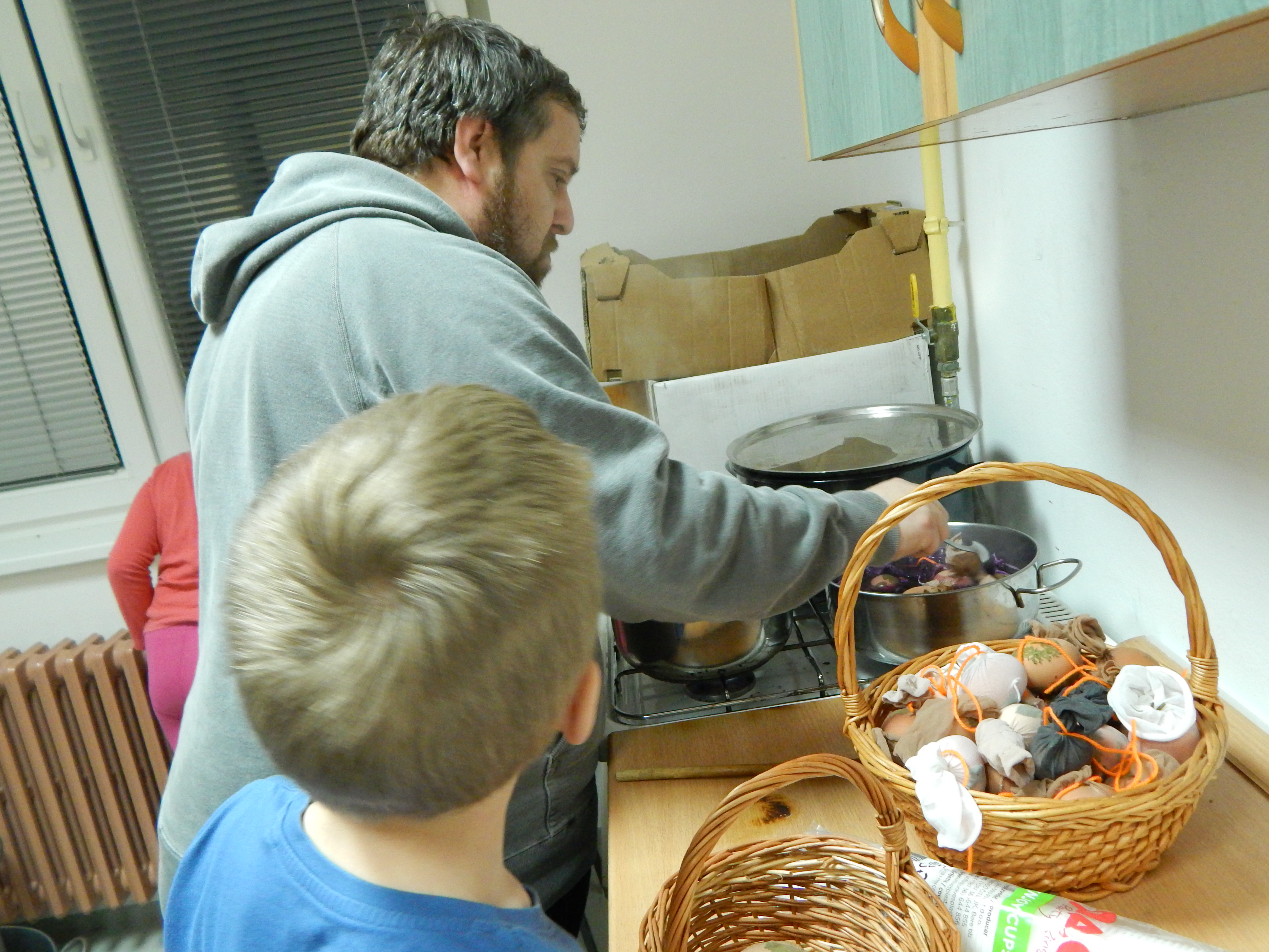 Danas smo proveli lijepu večer u KUD-u "Ježek". Skupili smo našu dječicu, i malu i onu nešto veću, i nekoliko mama kako bismo izradili pisanice onako kako su ih radile naše bake. Ukrasili smo ih različitim travama, zavezali u čarapu i kuhali u tri prirodne boje - ljuskama luka, koprivama i crvenom kupusu. Dok su se jaja kuhala, stigli smo popričati o Uskrsu i pripremi za Uskrs. Naravno, našli smo vremena i za igru, a na kraju smo provjerili kako su nam ispale pisanice. Sigurno ćemo takve raditi i kod kuće. Ipak su naše bake znale najbolje!